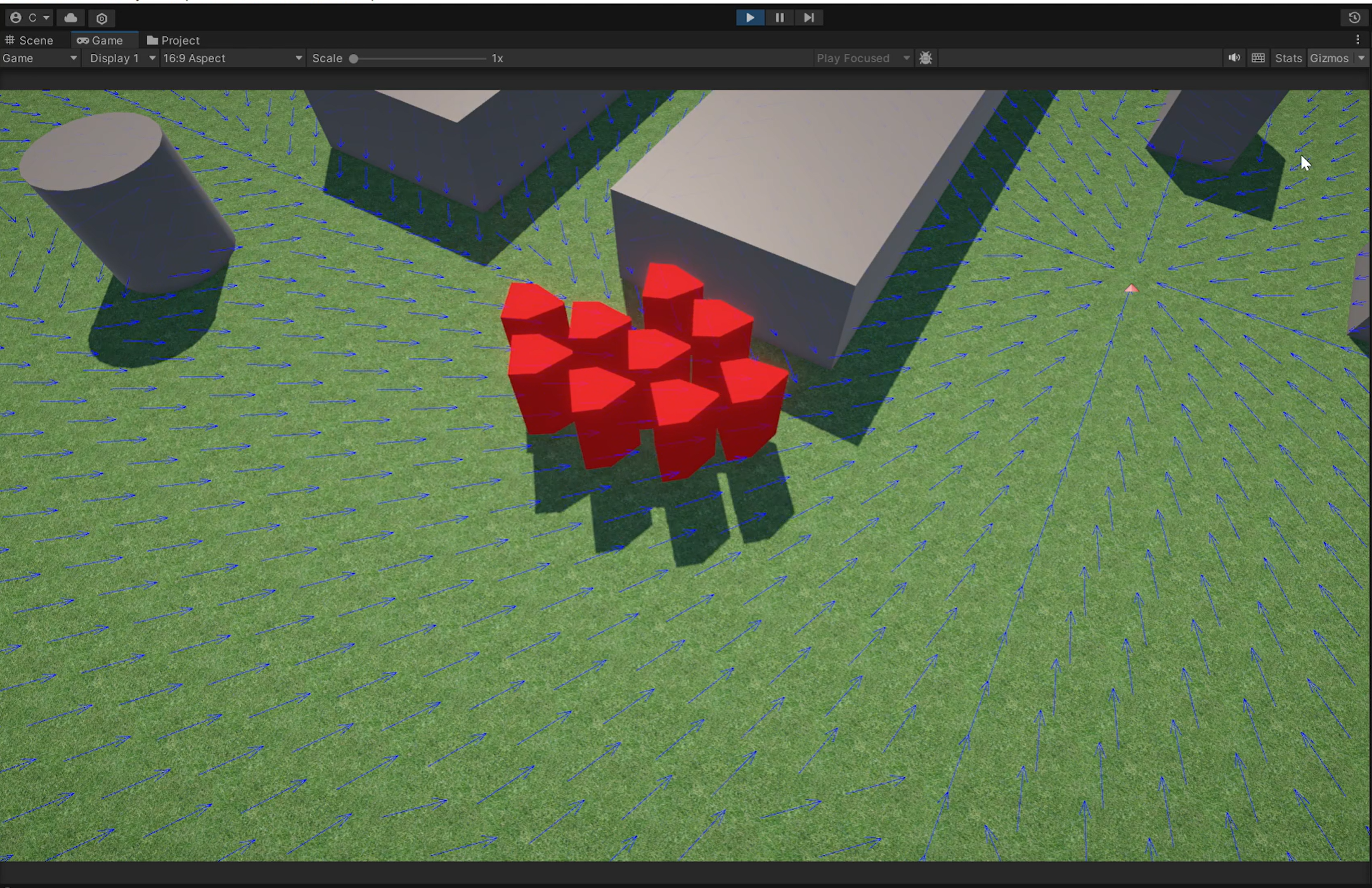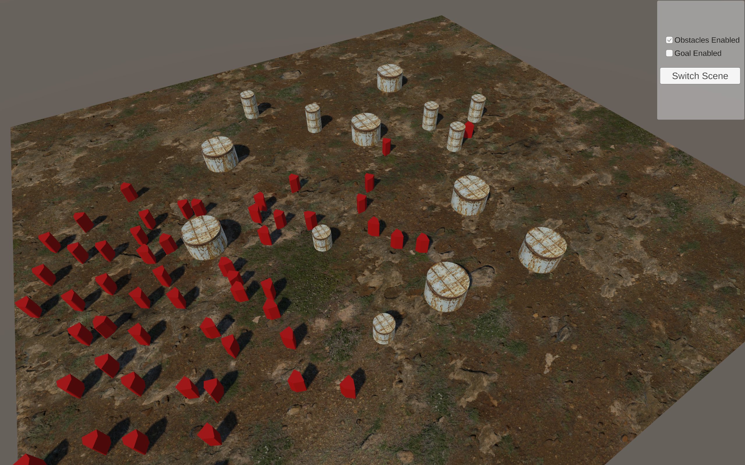 A 3D simulation of large group pathfinding using a Flow Fields algorithm calculated by solving the Eikonal Equation. My final project for my Animation and Planning in Games class, that was implemented based on the paper Continuum Crowds by Adrien Treuille, Seth Cooper, and Zoran Popovic.